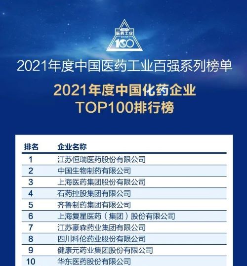 7月12日晚,正在举行的2022米思会(中国医药健康产业共生大会)上,发布了“2021年度中国医药工业百强系列榜单”。ag尊龙凯时医药以扎实的创新研发实力和稳健的市场运营能力,再次蝉联“中国化药企业TOP100排行榜”榜首。