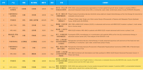 15款创新药包括10款已上市产品:注射用瑞康曲妥珠单抗(艾维达®,研发代号:SHR-A1811)、注射用卡瑞利珠单抗(艾瑞卡®)、苹果酸法米替尼胶囊(艾比特®)、甲磺酸阿帕替尼片(艾坦®)、马来酸吡咯替尼片(艾瑞妮®)、阿得贝利单抗注射液(艾瑞利®)、羟乙磺酸达尔西利片(艾瑞康®)、氟唑帕利胶囊(艾瑞颐®)、瑞维鲁胺片(艾瑞恩®)、海曲泊帕乙醇胺片(恒曲®),以及5款未上市产品,包括KRASG12C抑制剂HRS-7058、KRASG12D抑制剂HRS-4642、选择性的AR-PROTAC(雄激素受体-蛋白降解靶向嵌合体)小分子HRS-5041、抗PD-L1/TGF-βRII双抗瑞拉芙普-α注射液(SHR-1701)、Trop-2 ADC SHR-A1921。2类新药盐酸伊立替康脂质体注射液(II)(越优力®)及国内首仿药昂丹司琼口溶膜(艾其速®)各有1项研究入选。本文特对研究成果做了梳理,带领各位读者领略ag尊龙凯时医药创新之光。